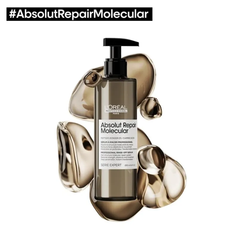 L’Oreal Professionnel Serie Expert Absolut Repair Molecular Rinse-off Serum [REKOMMENDERAS FÖR SKADAT HÅR] För skadad hårstruktur, färgbehandlat, blekt och naturligt ofärgat hår. Reparerar 2 års skador i en användning*. [VETENSKAPLIG UPPTÄCKT – MOLEKYLÄR REPARATION] När håret skadas förstörs dess molekylära struktur som består av peptider. Håret bryts av och blir mindre elastiskt utan livfullhet. Men de flesta peptider är för stora för att kunna tränga in i fibrerna, vilket gör skadorna nästan oåterkalleliga. Vetenskaplig upptäckt – Absolut Repair Molecular. [INNOVATIV TEKNOLOGI] Det är mer än ytreparation, det är inre molekylär reparation. Detta exklusiva högkoncentrerade rinse-off serum med 2% bindemedel av peptider + 5 aminosyror återuppbygger hårets molekylära struktur** för att återställa dess styrka, elasticitet och livfullhet***. [DJUP PENETRATION] Inspirerad av hudvårdsserum går den längre än vanliga reparerande masker och tränger djupt in i fibrerna för att återuppbygga hårstråets molekylära struktur****. [OMEDELBAR FÖRVANDLING] Håret förvandlas omedelbart: glans och släthet förbättras dramatiskt*****. [PROFESSIONELL FORMULA] Serumets lätta konsistens absorberas av fibrerna och reparerar hårets molekylära struktur**. [UTVECKLAD I SAMARBETE MED EXPERTER PÅ HÅRREPARATION] Denna serie har utvecklats i samarbete med 3 experter på hårreparation: – Adina Pignatare @adina_pignatare från USA: “Mina kunder genomgick enorma förvandlingar! De tyckte att deras hår hade blivit otroligt livfullt men även att det kändes mer hälsosamt. Det är imponerande att något som är avsett för reparation har den effekten.” – Mike Julliard @loungecut från Frankrike: ”Vi förskönar inte bara håret, vi ger det en ny struktur, en ny styrka och tar farväl av hår utan elasticitet.” – Barbara Rabelo @barbararabelo_ från Brasilien: Den här serien återuppbygger och reparerar på djupet. [BE OM ABSOLUT REPAIR MOLECULAR-SALONGSBEHANDLINGEN] vid ditt nästa salongsbesök, be din frisör om ABSOLUT REPAIR MOLECULAR-programmet för att reparera hårets molekylära struktur****** och reparera 2 års skador vid en användning*. För starkare hår med återställd elasticitet och livfullhet.